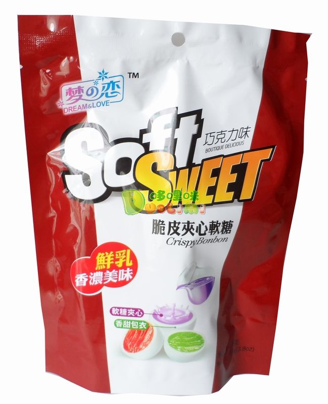 品 名:夢之戀脆皮夾心軟糖(巧克力味)108克 進(jìn)口食品批發(fā)